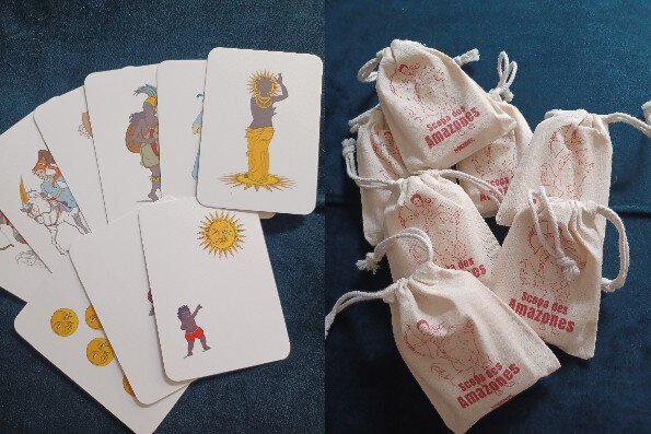 Il y a deux ans, les Missives se lançaient dans un financement participatif pour créer un jeu de cartes inclusif et féministe. La Scopa, jeu traditionnel italien où valets, cavaliers et rois brandissent leurs épées viriles et leurs bâtons menaçants, fut ainsi revisitée et entièrement redessinée pour devenir la Scopa des Amazones : les reines, les cavalières et leur progéniture non genrée rebattaient les cartes et participaient au renversement de l’ordre du monde. Des corps variés, aux corpulences et aux âges divers permettaient par le jeu d’aborder la question des représentations, dès le plus jeune âge : pour jouer à la Scopa, il suffit de savoir compter jusqu’à dix ! Un autre enjeu avait motivé l’équipe des Missives. Traditionnellement la Scopa était une affaire d’hommes attablés au café, occupant gaiement l’espace public et tapant le carton avec entrain. Où étaient les femmes? ni sur les cartes, ni aux tables de café, nous devions donc les faire (re)venir pour qu’à leur tour elles occupent sans frémir les espaces de socialisation auxquels elles ont droit elles aussi. 250 exemplaires plus tard, épuisés en une année, après des centaines d’heures de jeu, de débat et de rires – car nous sommes de celles qui militent dans la joie -, la mairie de Montreuil a souhaité soutenir notre projet et nos forces bénévoles en nous accordant une subvention exceptionnelle afin de rééditer la Scopa des Amazones sans avoir à repasser par la case ô combien épuisante du financement participatif. 300 exemplaires ont ainsi pu sortir de presse et, victoire, alors que lors de la première édition, nous avions dû nous résoudre à imprimer à Hong Kong pour assurer un prix de vente accessible à tous.tes mais au détriment de nos convictions écologistes, la Scopa nouvelle a été fabriquée en France, sortie des presses d’un imprimeur breton. Beaucoup d’entre vous ont déjà été initié.e.s à la Fête de la Ville, au festival des Murs à Pêches ou à la Journée des associations sur le stand des Missives. Pour celleux qui auraient manqué le coche, session de rattrapage samedi 18 octobre à la Bibliothèque des Objets de Montreuil qui nous accueille chaleureusement pour l’occasion. On vous y attend nombreux.ses, et vous pourrez même acheter le jeu sur place pour 15€ au lieu de 20€ pour la précédente édition (merci la ville de Montreuil!) : une belle occasion de nous soutenir, pour qu’on puisse continuer à vous proposer des événements littéraires de qualité et accessibles à tous.tes. A samedi prochain !